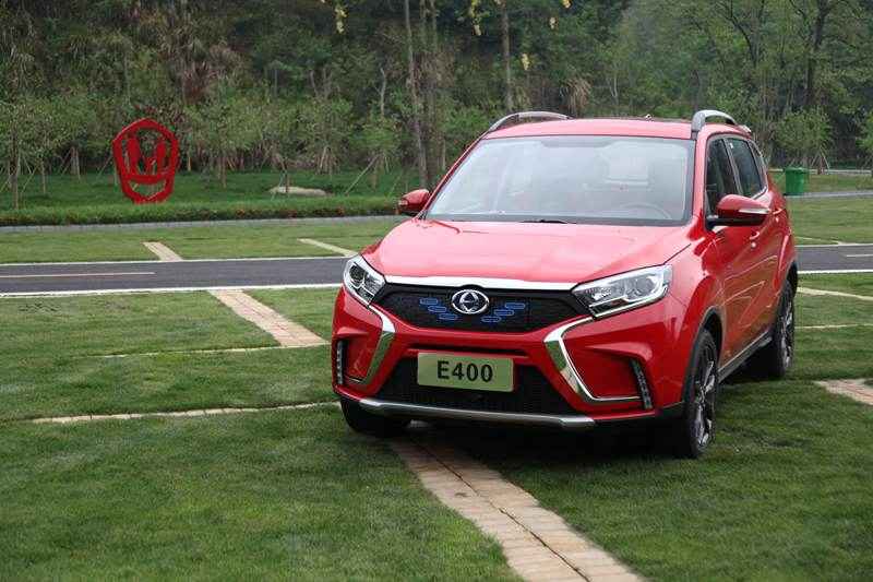 1. E400源自“兄弟”车型——燃油版陆风X2,外观在X2基础上进行了一定修改,前格栅采用了蓝色V字型装饰,突出其新能源车的身份;车身尺寸为4160/1810/1670毫米,轴距为2560毫米。顶配车型配备了前后规格均为215/50/r17的轮胎。