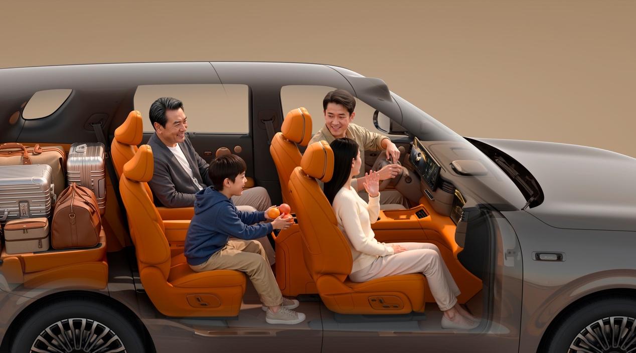 搭配21.5英寸4K二排观影屏,长途坐车时一家人能一起看电影解闷。更实用的是,它还能在六座和大四座之间灵活切换,家用、商务接待都能hold住,空间利用率直接拉满。
