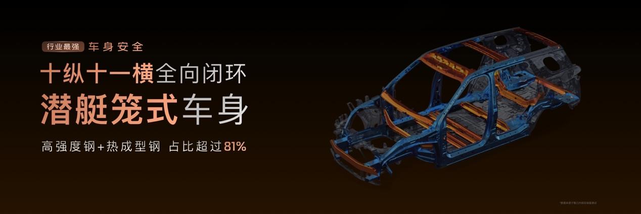 车身安全也毫不松懈,它采用十纵十一横的潜艇笼式车身,铺了大量潜艇级热成型硼钢,再加上上汽20多万次的碰撞测试验证,就算发生极端碰撞,也能最大程度保住乘员舱的完整,给车内人员留足生存空间。