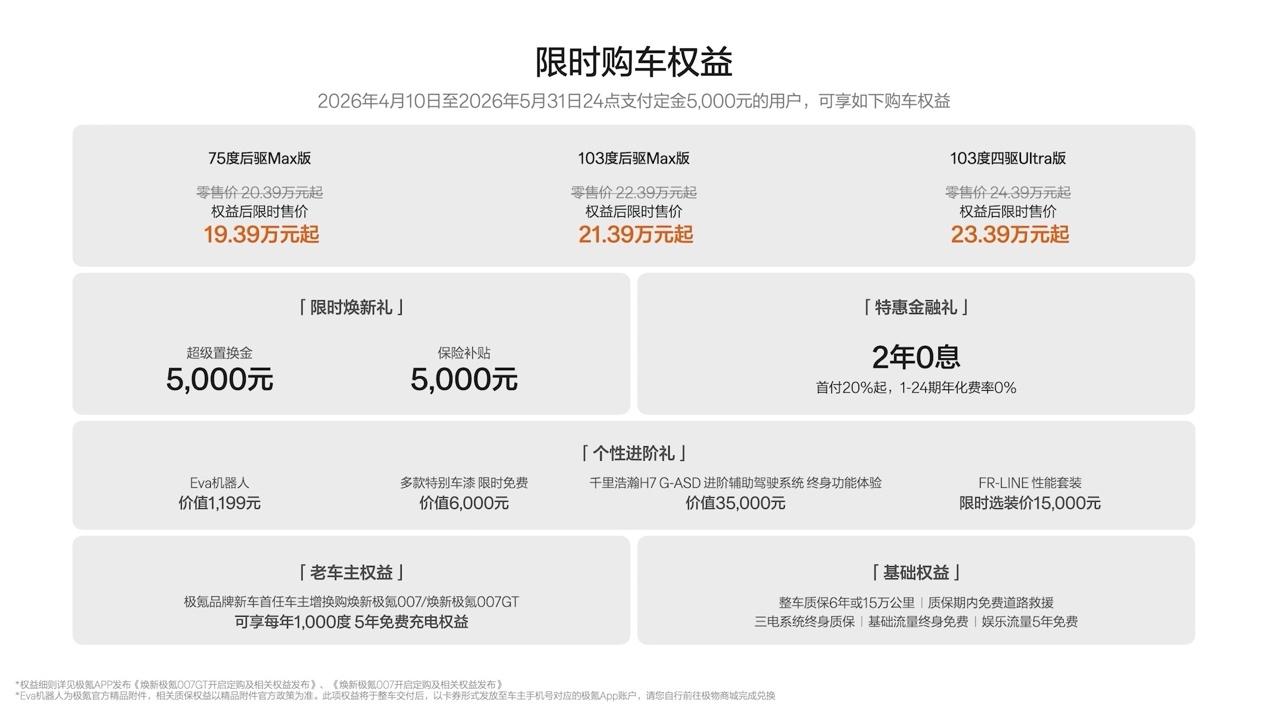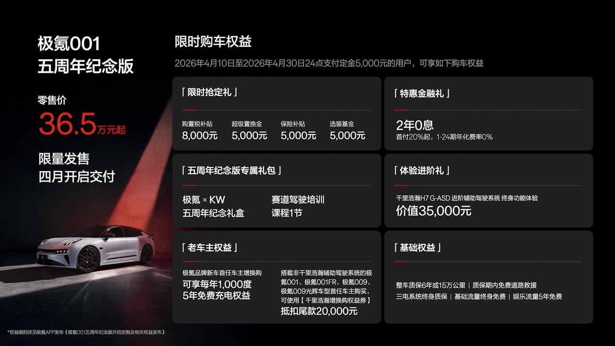 4月10日,极氪一下子推出了焕新7系和极氪001五周年纪念版。