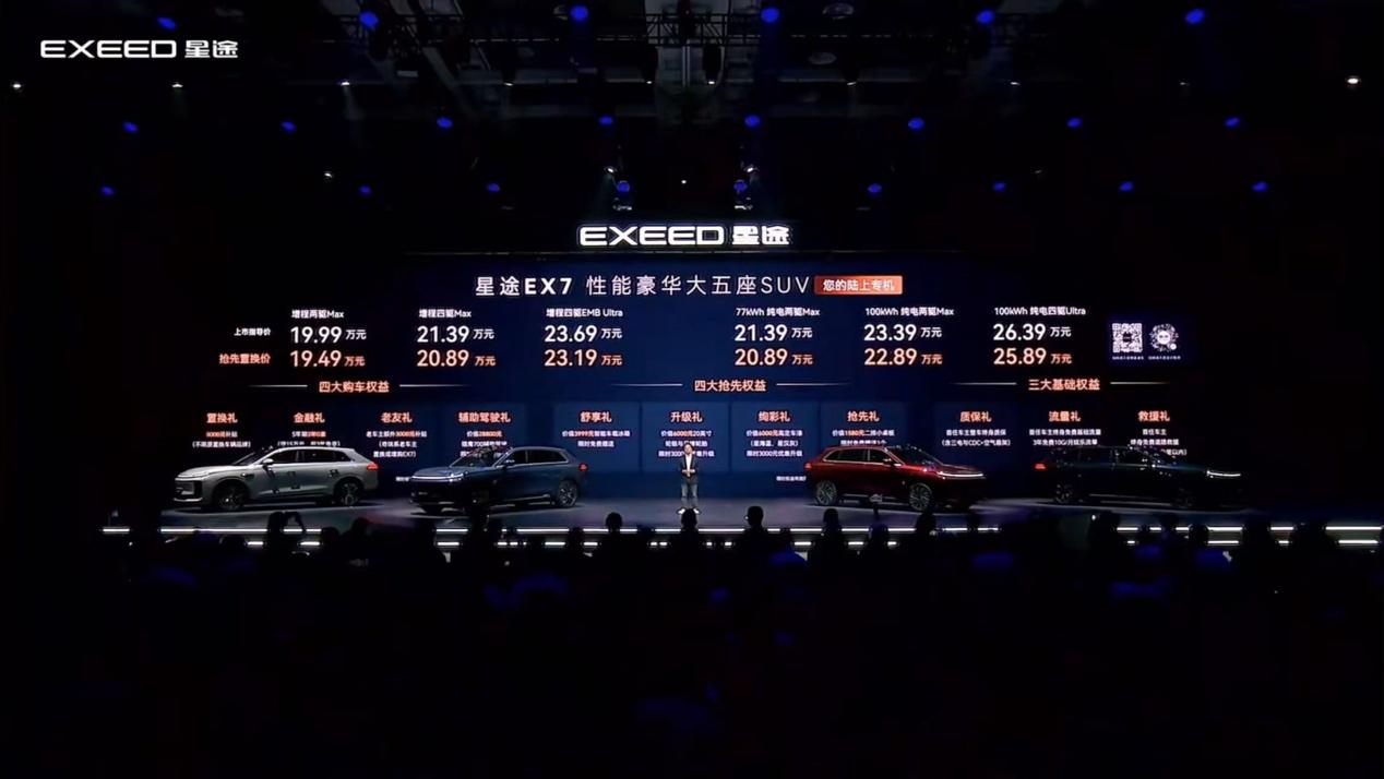 星途EX7一共推出了七款车型,官方指导价在19.99万元到26.39万元之间。