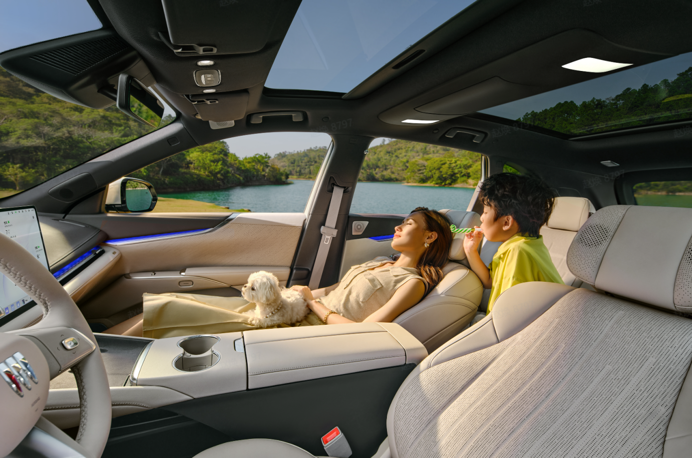 靠着这样前瞻的开发理念和专家共创的成果,别克至境E7采用了至境世家五恒健康座舱,用恒温、恒湿、恒氧、恒洁、恒静,打造了一套全维度的健康生态。恒温系统适配儿童的体温调节特点,恒湿系统能自动除雾防潮,恒氧系统会实时监测二氧化碳浓度并主动换气,恒洁系统能有效阻隔尾气和颗粒物,恒静则能给儿童深度睡眠提供安静的环境。