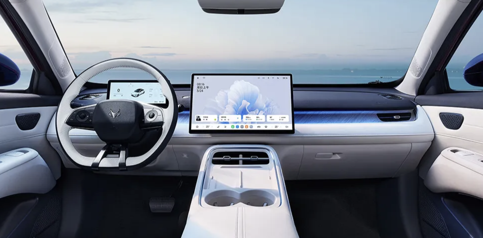 车漆提供晨曦白、云玫粉、疏影绿等七种配色,内饰分为云米浅色与黑灰深色两种风格,大面积软质包裹搭配256色柔瀑光感律动氛围灯,座舱兼顾舒适感与氛围感。